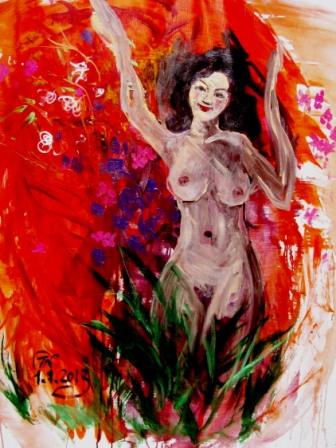Ngày đầu năm 2013, Trần Nhương khai bút mong năm mới hanh thông mọi nhẽ. Tranh có tên NÀNG XUÂN. vẽ buông ra thế để ngắm nghía và tu chỉnh. Tranh vẽ bằng Acrylic khổ 1,5m x 1,5m. Khoe bạn đọc ngày năm mới cho vui...